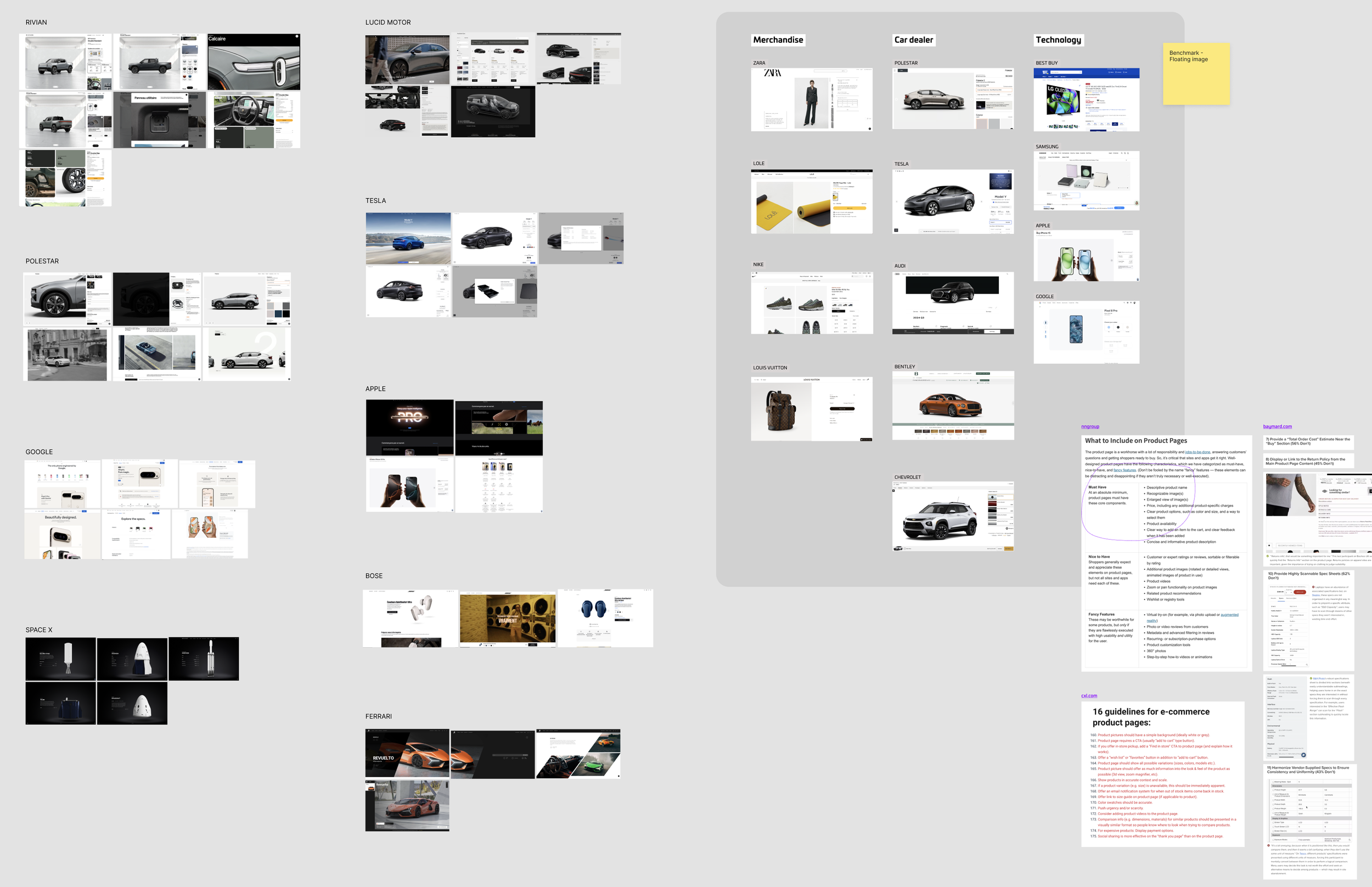 During the benchmark phase, we focus on analyzing websites and platforms that share similarities with our product, particularly car dealer sites, since we are selling ships. We examine how they present products, handle comparisons, and guide users through purchase flows. In addition, we review expert articles and research from sources such as Nielsen Norman Group to gather best practices in UX, interface design, and user engagement. This combination of industry and research insights helps inform design decisions and ensures a user-centered, effective e-commerce experience.