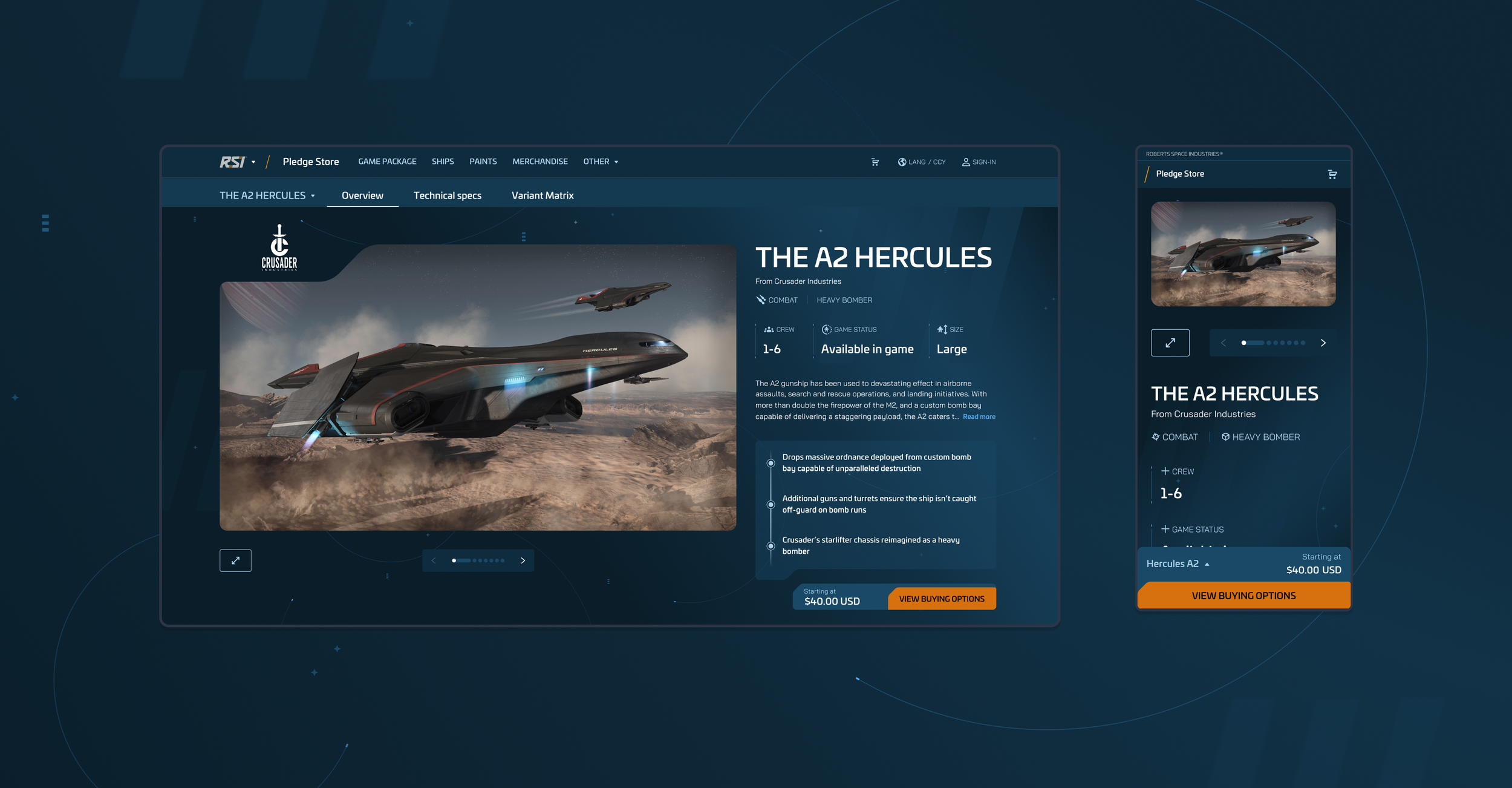 For nearly five years, I’ve been contributing to the evolution of Star Citizen’s web ecosystem, moving from UI Designer to Product Designer with growing responsibilities. Throughout this journey, I’ve played a key role in projects connected to the platform’s e-commerce experience — a core area where design decisions directly impact both business performance and player engagement.