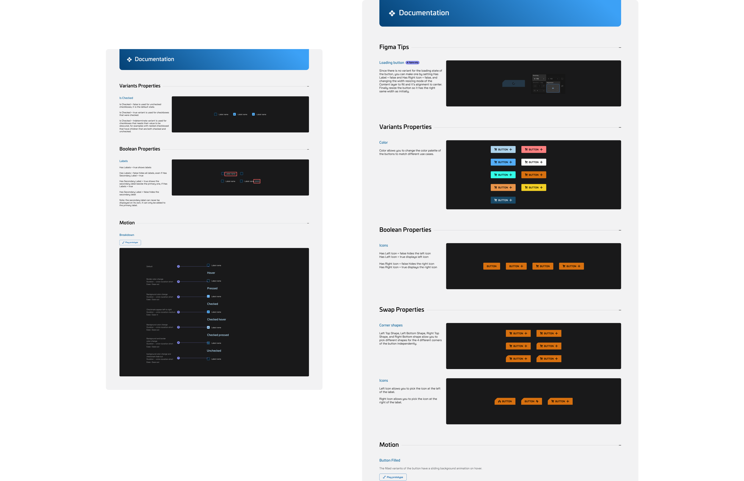 To support developers and QA teams, I created detailed documentation for each component integrated into the design system. This documentation outlines the component’s purpose, structure, and behavior across all possible states and variants. It also includes usage guidelines, interaction patterns, and motion specifications to ensure consistency in implementation. By providing clear examples and edge cases, the documentation helps developers anticipate technical constraints and allows QA to validate every scenario with precision.